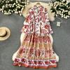 Květinový potisk Volné šaty s rozšířenými rukávy pro jaro/léto pro ženy Nové Prázdninové Volnočasové Temperamentní Dlouhé A-linie šaty