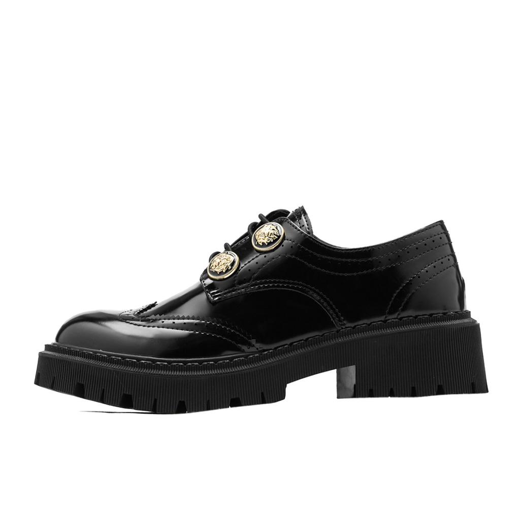 Brogue Carved Small Leather Shoes Women's Autumn and Winter Hepburn Style Small Gold Buckle Thick Bottom Retro British Loafers Genuine Leather Shoes