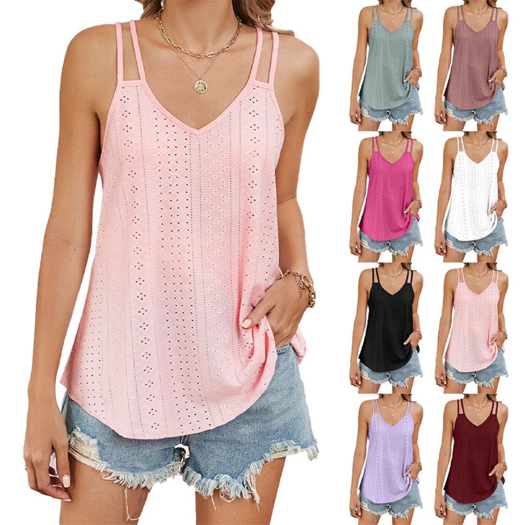 Women's Summer Sleeveless Refreshing Tank Top T-shirt Casual Loose Strap Open Back Tank