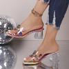 Dámské 9cm vysoké podpatky Mules Nazouváky Čtvercový blok Průhledné podpatky Křišťálové Duhové Pantofle Dívčí Letní Barevné Fetiš Červené Boty