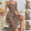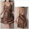 Ice Silk Sling Sleepwear pro ženy Letní Leopardí vzor Pure Desire Wind Split Open Back Women Sexy Sling Sleepwear