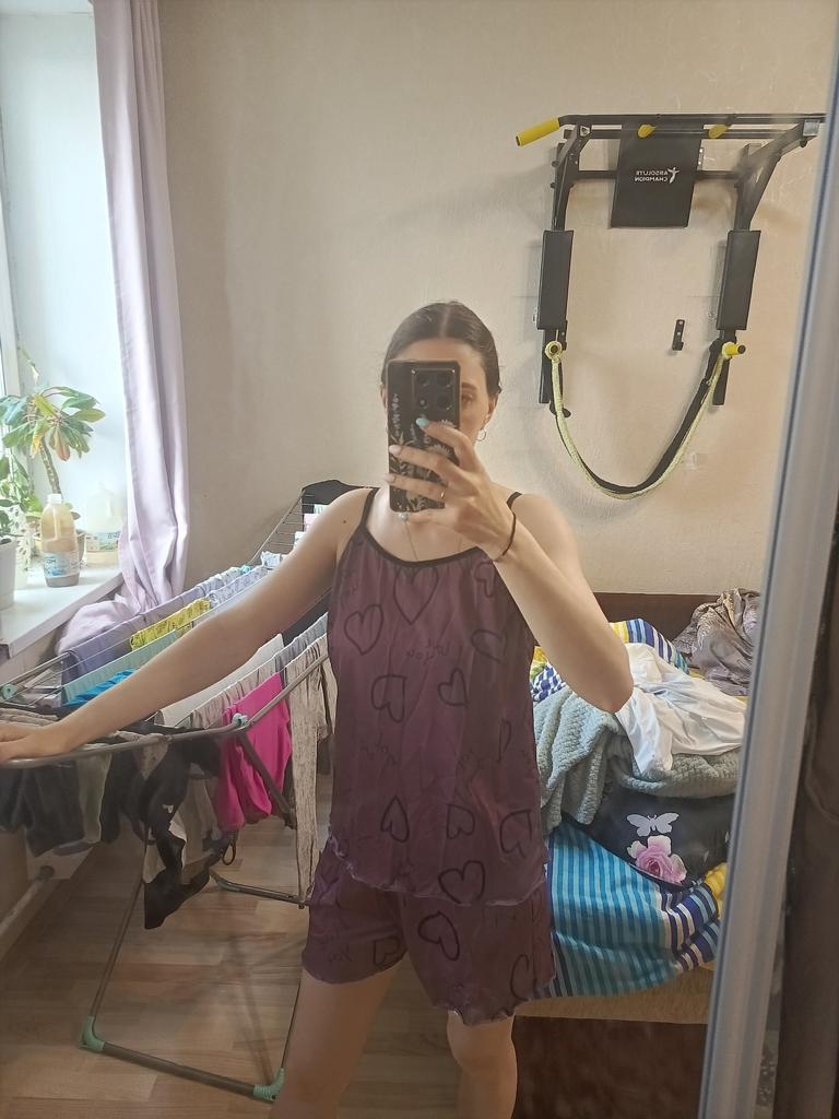 Pyžamo je příjemné na dotek, natáhlo se do velké velikosti, přilepilo se ke všem záhybům) Musela jsem ho dát kamarádce, která je hubenější.