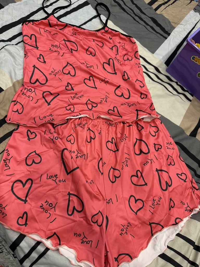 2 ks/sada Dámský top bez rukávů do O krk elastický potisk srdce Sada ramínek pyžama s vysokým pasem