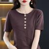 Dámské tričko s krátkým rukávem na knoflíky v jedné řadě, léto 2024, nový styl, žebrovaná bavlna, krátký top s vysokým pasem