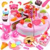 Sada 38 kusů dortové sady, dětských hraček, odpoledního čaje, zákusků a příborů, simulující jahodový ovocný dort