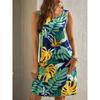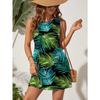 Šaty s kulatým výstřihem a tropickým potiskem, Bezrukávové šaty ve stylu dovolené pro jaro a léto, Dámské oblečení