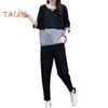 2 ks/sada Dámské tričko Kalhoty Set Sportovní oblečení Colorblock Top s kulatým výstřihem Poloviční rukáv Top Elastický pas Dlouhé Kalhoty Běžné kalhoty Top na dojíždění