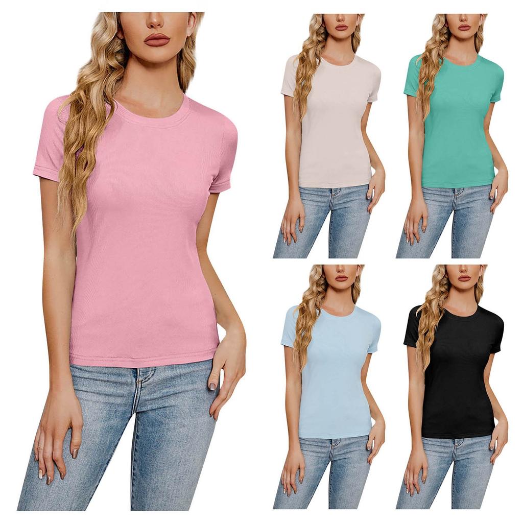 Women's Short-sleeved Round Neck T-shirt Slim-fit Stretch Knit Sweater
