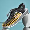 Pánské pletené letní sandály s uzavřenou špičkou, prodyšné a protiskluzové boty s elastickými tkaničkami, vhodné pro venkovní volný čas, jarní a letní nošení