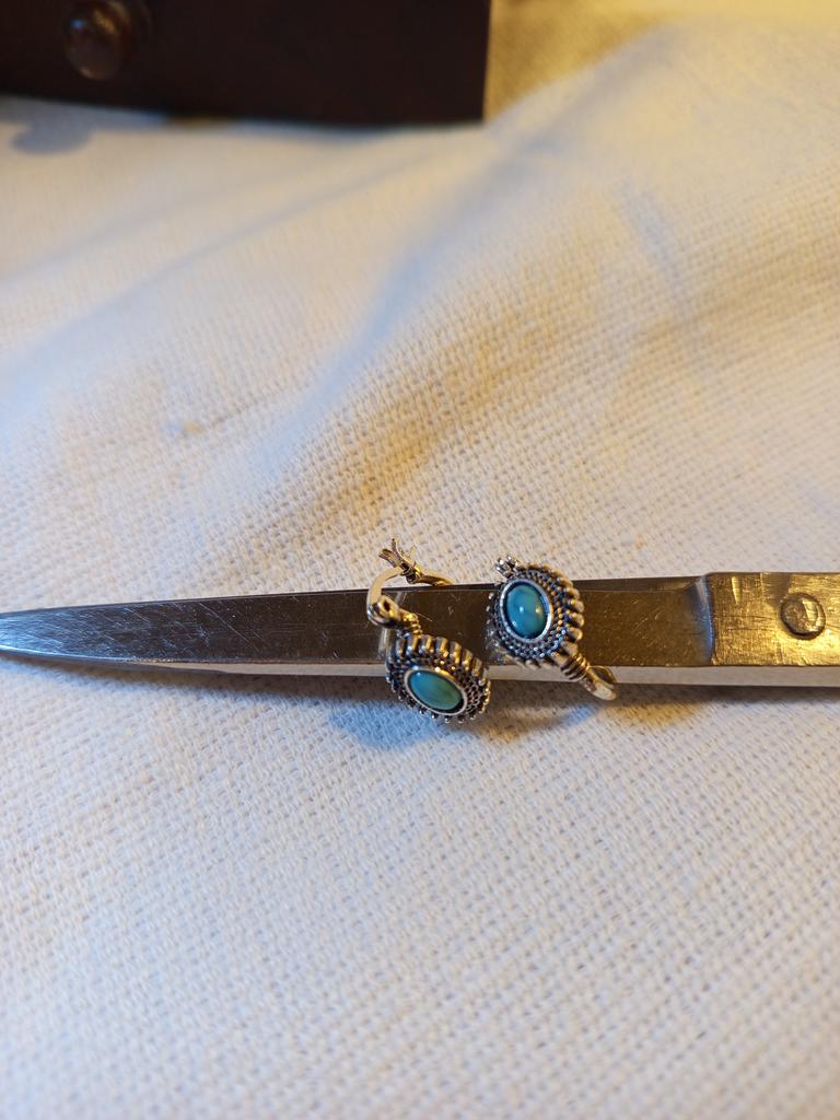 Módní retro tyrkysové náušnice České starožitné oválné náušnice