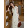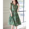 Letní bohémský květinový potisk Dlouhé šaty Dámské Výstřih do V Krátký rukáv Nařasené šaty do A Plážová móda Krátké sexy tenké oblečení