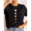 Šik dámské tričko s potiskem srdce Pohodlný kulatý výstřih Lehký květinový krátký rukáv Ležérní top na jaro léto Dámská móda