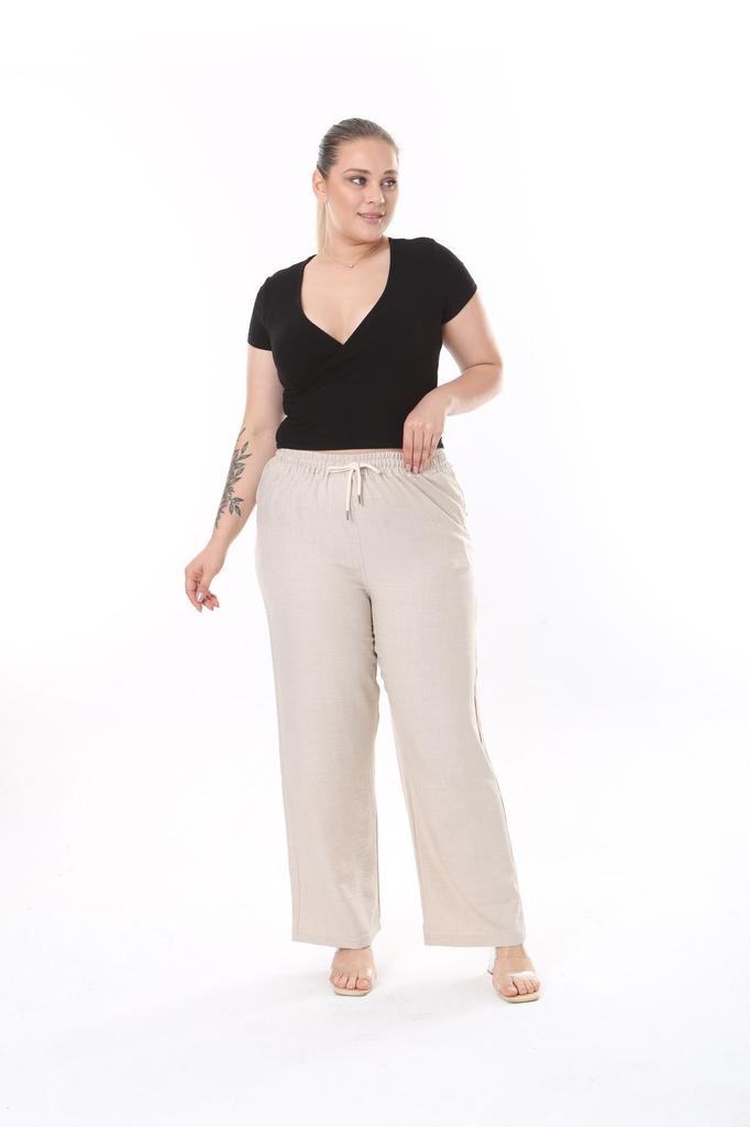 Dámské kalhoty pro větší velikosti, lněné, pohodlný střih, elastický pas, velké velikosti