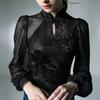 Potisk Topů Módní Dámské Oblečení Temperament Elegantní Košile Zakrývající Dlouhý Rukáv Polovysoký Límec Halenka Volná Kancelářská Košile