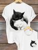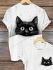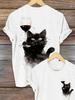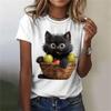 Letní Kreslený Roztomilý Kočka Dámské Tričko Kočka Krátký Rukáv Móda 3D Potisk Oversized Dámské Oblečení Tričko Ženy Denní Ležérní Top