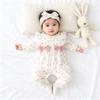 Kojenecká kojenecká sada podzimních kombinéz s kulatým výstřihem, dlouhým rukávem, květinovým potiskem, zipem, košilkou, čelenkou, oblečením pro novorozence