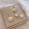 Módní Jednoduché Třpytivé Doplňky Perla Květina Třídílná Kombinace Náhrdelník Náušnice Prsten