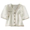 Letní dámská kostkovaná crop košile s krátkým rukávem, ženský temperament, tenká, všestranná, zkrácený top, bunda s polovičním rukávem