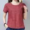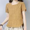 Dámské patchworkové bavlněné lněné jednobarevné tričko s krátkým rukávem