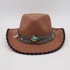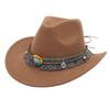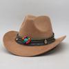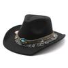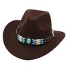 Etnická buřinka střapec western kovbojský klobouk tyrkysový plstěný klobouk venkovní literární klobouk proti slunci