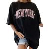 Summer Women Fashion Letter Print Reflective T-shirt Loose Round Neck Top