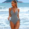 Pruhované plavky One Piece Beach Wear Swim Lady Summer Bikiny Push Up Plavky Vycpané plavky