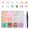 Kawaii Barevné Smíšené Pryskyřičné Kamínky Ozdoby na Nehty Mašličky Perly Sada DIY Manikúra Dekorace Krabička s Voskovým Perem Pinzetou