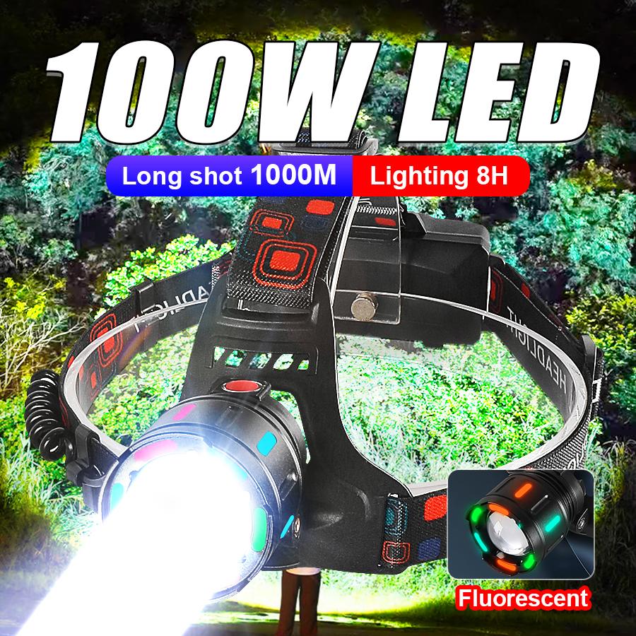 High power 100W LED useful headlamp, fluorescent night head lantern.