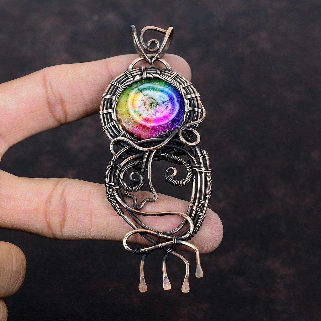 Rainbow Solar Quartz Druzy Pendant Copper Wire Wrapped Pendant Handmade Pendant Elegant Copper Jewelry Gemstone Pendant Gift For Anniversary