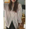 Dámská vintage pruhovaná košile blůza košile volná letní s dlouhým rukávem topy