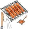 Váleček na párky Nerezový váleček na klobásy s extra dlouhou dřevěnou rukojetí, grilovací gril na párky