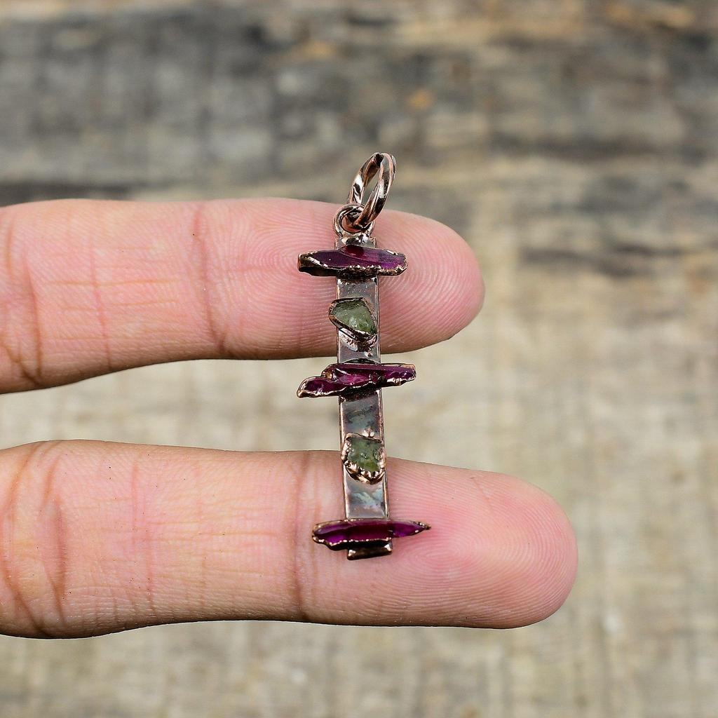 Růžový a Zelený Turmalín Surový Přívěsek Elektroformovaný Měděný Přívěsek Ručně Vyráběné Šperky Drahokamový Přívěsek Elektroformované Šperky Zásnubní Dárek