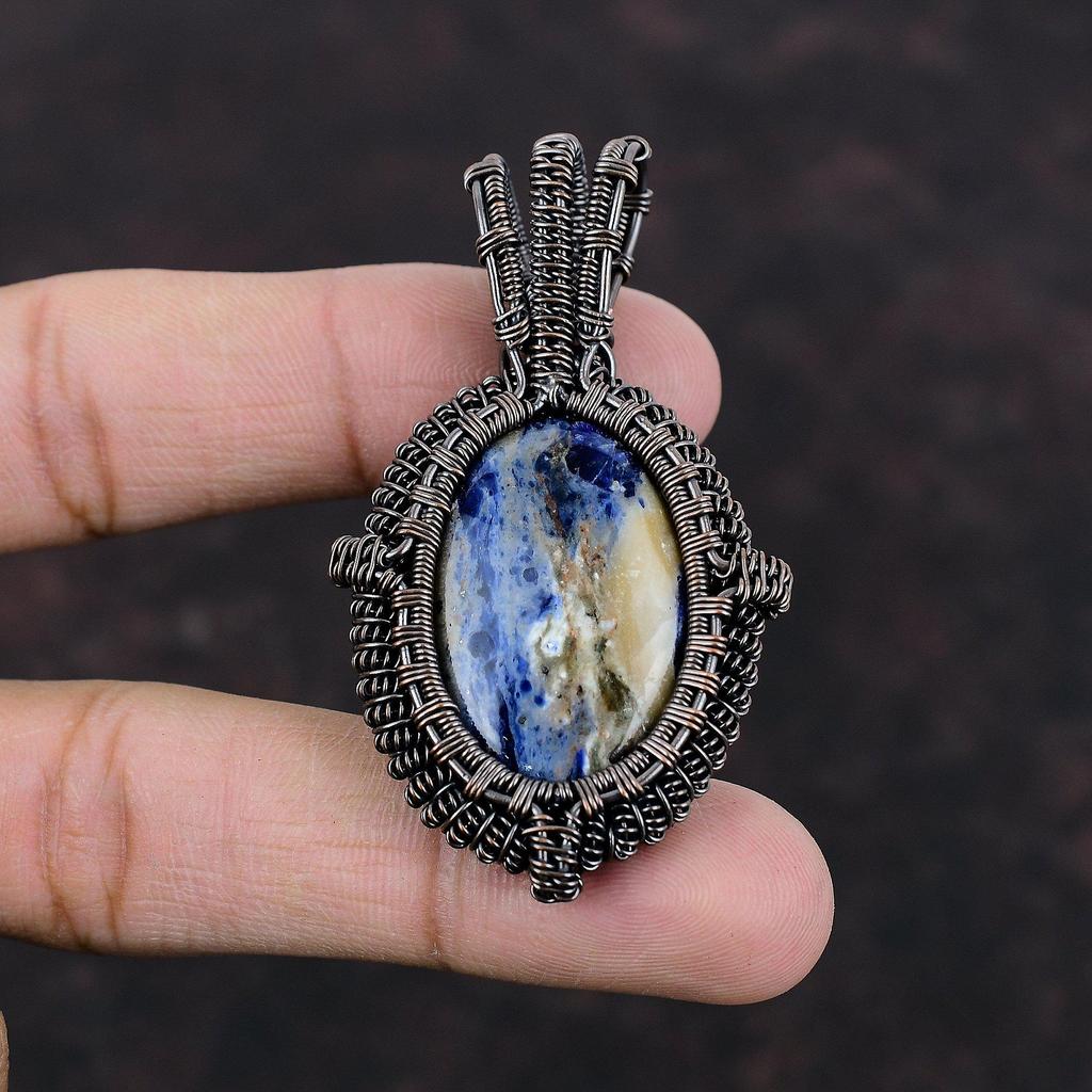 Sodalite Pendant Copper Wire Wrapped Jewelry Natural Gemstone Pendant Unique Jewelry Handmade Pendant Copper Wire Wrap Pendant Gift For Her