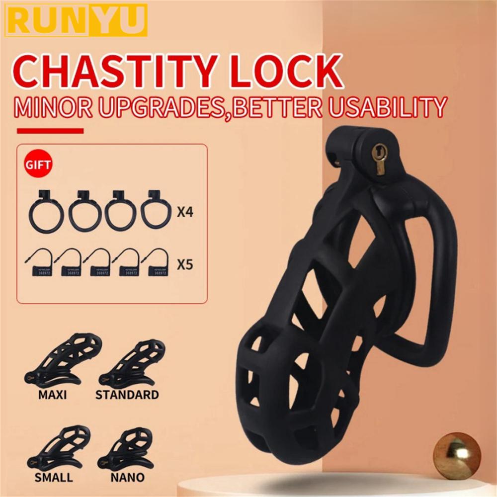 Chastity Men's Lock Chaste Vessel Černá Světlý PVC kroužek na penis Stahovací kroužek Multi Size Cage SM Sex Toys BDSM