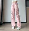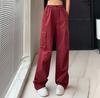FiveFive Y2K Drawstring Cargo Parachute Pants Women Harajuku Streetwear Oversize Wide Leg Straight Trousers Female Pockets