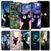 Roztomilý kreslený obal s černou kočkou pro Samsung A54 A52 A50 A70 A30 A40 A20S A20E A02S A12 A14 A22 A42 A72 A34 A32 5G A04s Průhledný kryt