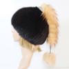 New Women Knitted Real Mink Fur Hat With Fox Tail Luxury Quality Real Mink Fur Cap Lady Winter Warm 100% Real Mink Fur Hats