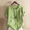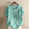 Women's Fashion Round Neck Short Sleeve T-shirt Casual Cotton Linen Graphic Shirt Leisure Loose Ship's Anchor Prined Summer Blouse Tops