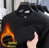 Podzimní a zimní mikina plus sametová zateplená pánská s dlouhým rukávem volný pulovr kulatý výstřih spodní tričko top