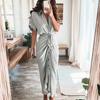 Letní Nové Šněrování v Pase Plus Size Ležérní Šaty Ženy Krátký Rukáv Jednořadé Košilové Šaty Ženy Jednobarevné Volné Elegantní Jednoduché Šaty 24324