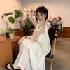 Dámské letní sladké bílé midi šaty podvazkové šaty sváteční letní šaty