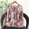 Dámské letní topy Literární volné bavlněné prádlo Květinová halenka s kulatým výstřihem Košile s krátkým rukávem