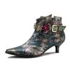 Dámské boty Sandály z pravé kůže Módní a elegantní Retro ručně malované embosované boty na vysokém podpatku