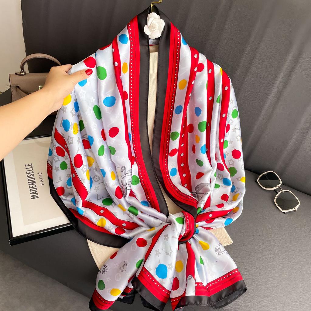 Módní všestranný barevný hedvábný šátek s potiskem puntíků jarní a letní tenký cestovní dovolenkový opalovací plážová osuška dámská šála