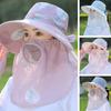 Dámský letní sluneční klobouk s UV ochranou, odnímatelnou síťkou na obličej a ochranou krku, šálový klobouk