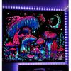UV Fluorescent Fantasy Moon Mushroom Tapestry Print Wall Hanging Art Home Decor
