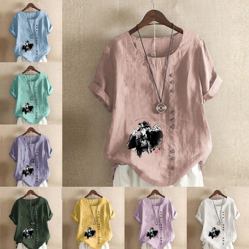 Women's Fashion Cool Man Print Short Sleeve T-shirt Loose Cotton Shirt Casual Loose Summer Blouse Tops Plus Size