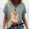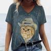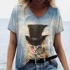 New Women's T-shirt Cartoon Cat print Vintage Plus Size Top Summer Women's Trending Clothes Fashion Short Sleeve Shirt V-neck