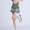Retro Denim Short Skirt Women's Summer High Waisted Slimming Short Skirt, Anti Glare A-line Wrapped Hip Skirt