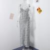 Dot Printed Sling Long Dress Women V-neck Sleeveless Backless 3D Flower Female Summer Party Holiday Lady Robe
